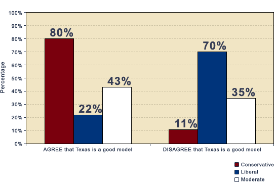 Respondents were asked: How strongly do you agree or disagree with the following statement: Generally speaking, the way state government runs in Texas serves as a good model for other states to follow?